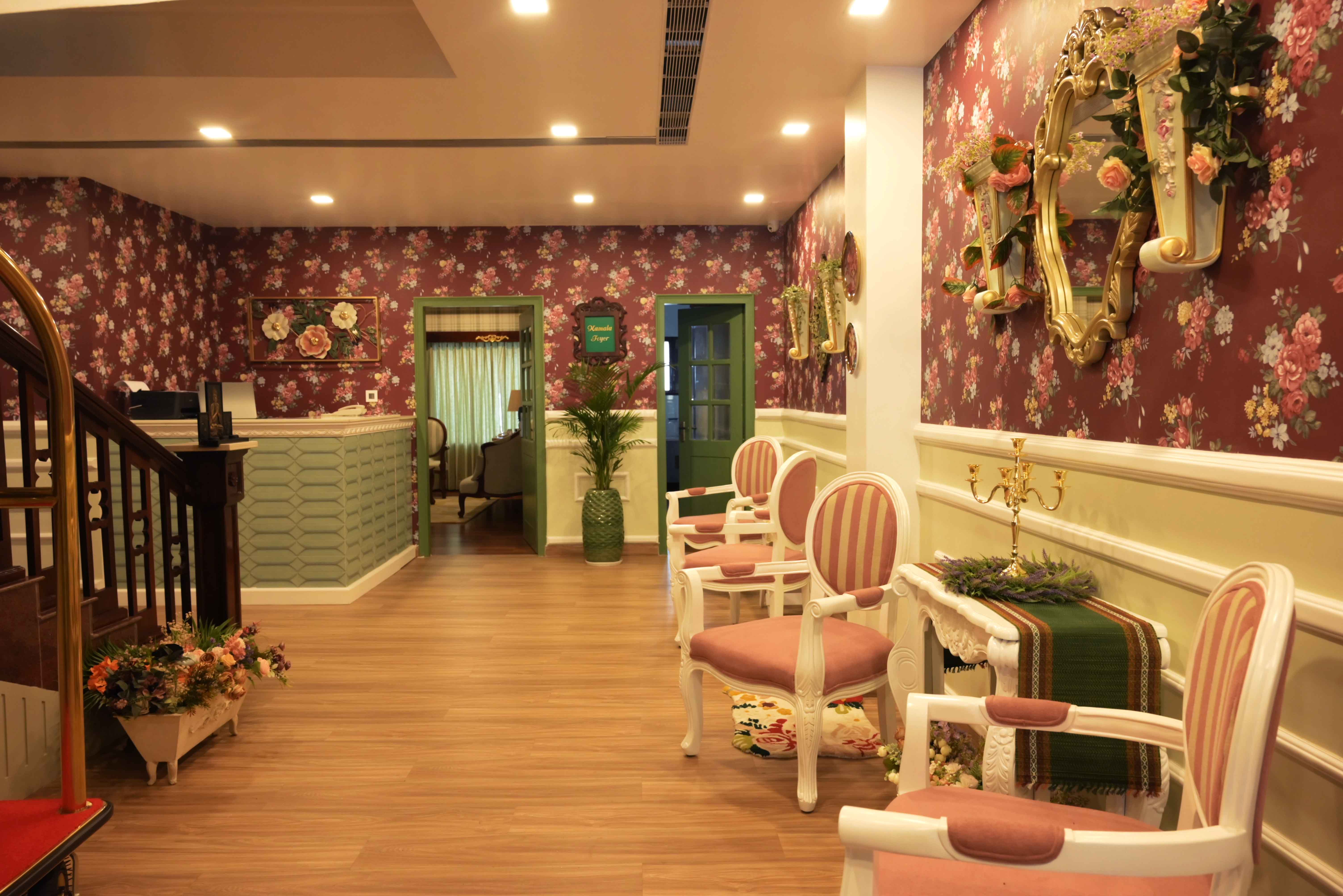 Pink and chestnut hues kiss the walls, while delicate chandeliers cast soft glows upon British-styled furniture, lovingly curated from another time. Each piece, each corner, tells a story of European manors, of the soft charm of Victorian afternoons.